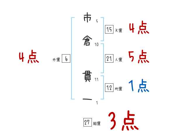 市倉貫一さんの画数の鑑定結果