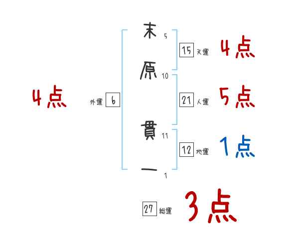 末原貫一さんの画数の鑑定結果