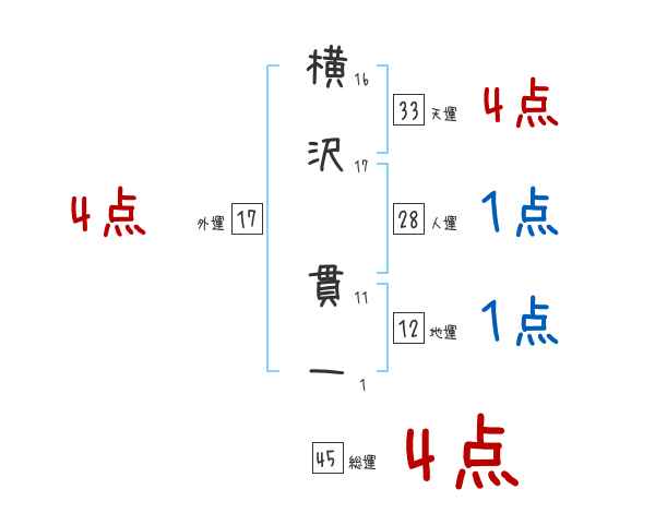 横沢貫一さんの画数の鑑定結果