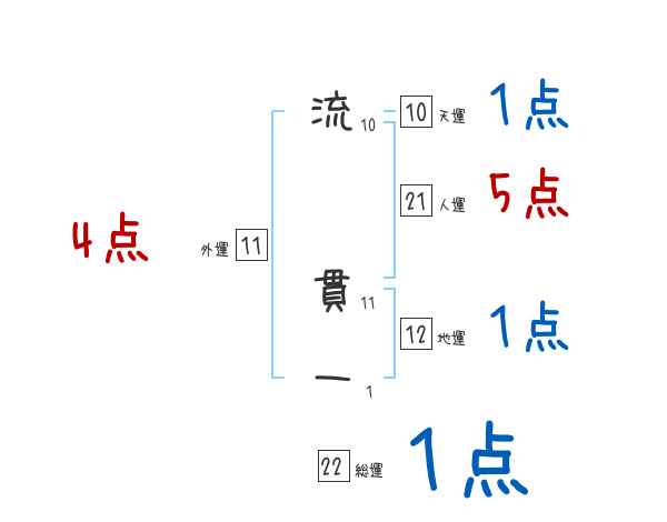 天運![]() | 流貫一さんの天運は10画の1つ星!不安を感じやすい傾向。ストレスを抱えないように注意しましょう。 家系が持つ宿命的な運勢を表します。祖先から受け継いだ苗字ですので自分の力が及びません。家柄を象徴します。 |