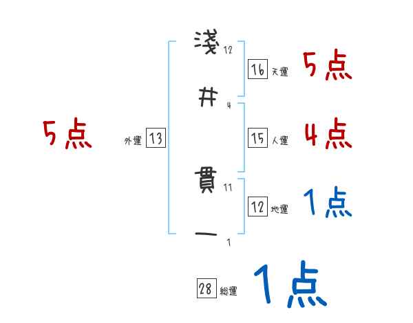 総運![]() | 淺井貫一さんの総運は28画の1つ星!家庭環境に注意。スポーツで活躍できる能力があるかも。 あなたの人生を表す1番重要な運勢です。生涯を通じて影響する総合運となり、主に50歳以降の晩年期に影響を及ぼします。 |
