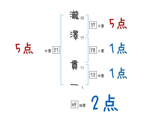 外運![]() | 瀧澤貫一さんの外運は21画の5つ星!統率力がある。独立し成功する。名誉を手に入れる。 生活面を象徴する運勢です。外部から受ける影響力を表し、結婚運、家庭運や職場、環境への順応性を表します。 |