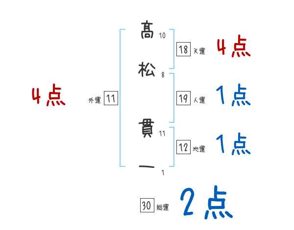 髙松貫一さんの画数の鑑定結果