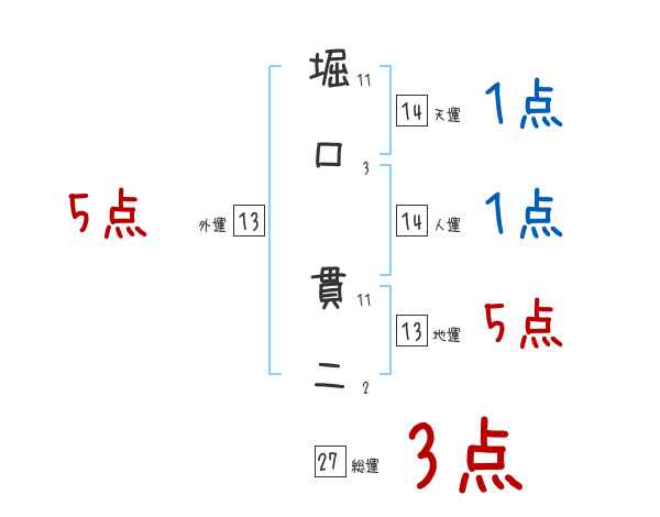 堀口貫二さんの画数の鑑定結果