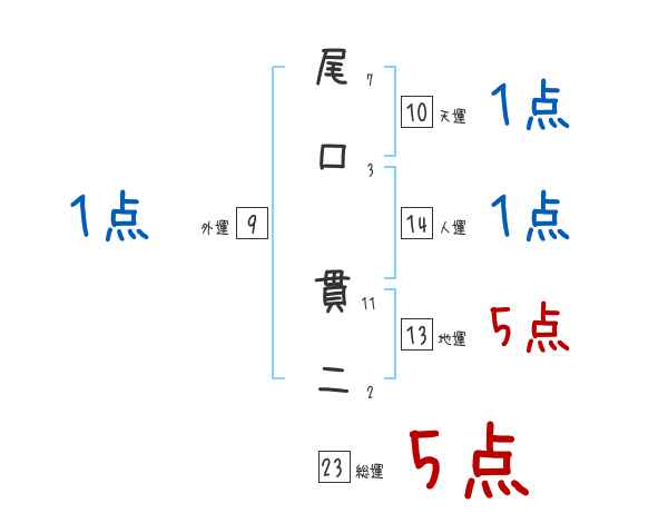 尾口貫二さんの画数の鑑定結果