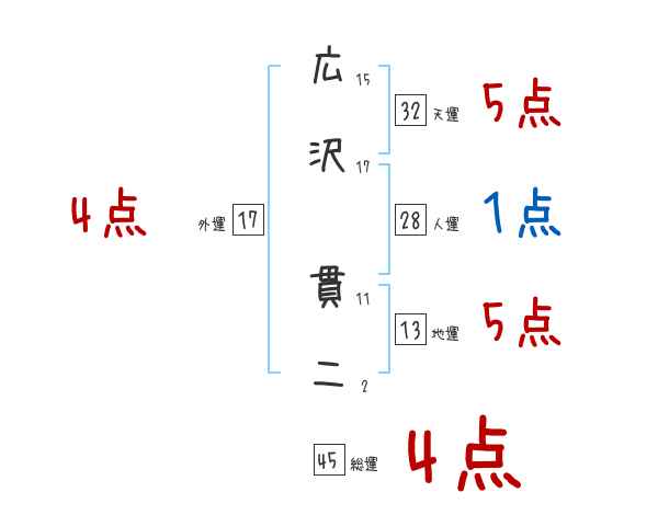 広沢貫二さんの画数の鑑定結果
