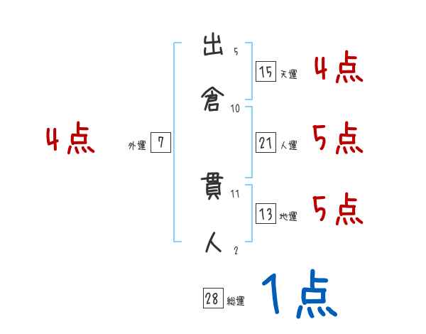 出倉貫人さんの画数の鑑定結果