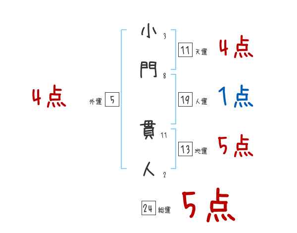 小門貫人さんの画数の鑑定結果