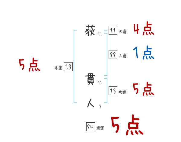 荻貫人さんの画数の鑑定結果