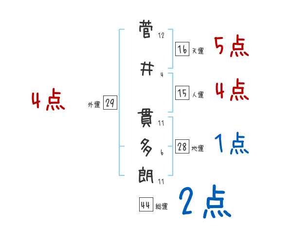 菅井貫多朗さんの画数の鑑定結果