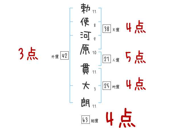 外運![]() | 勅使河原貫大朗さんの外運は42画の3つ星!病気に注意。多芸であるが消極的でおとなしい。 生活面を象徴する運勢です。外部から受ける影響力を表し、結婚運、家庭運や職場、環境への順応性を表します。 |