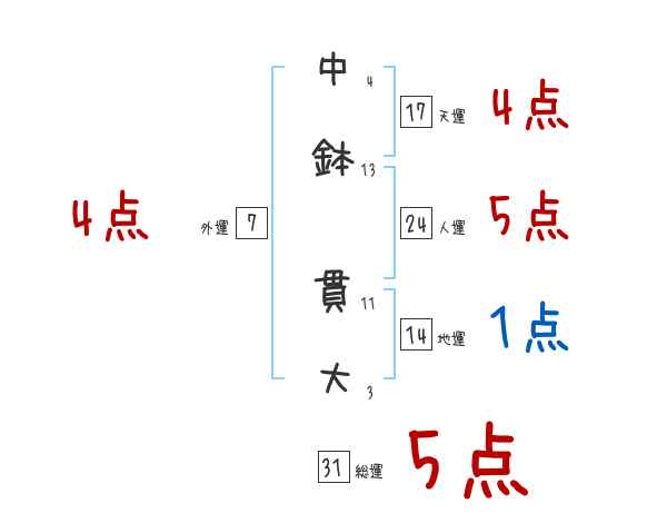 中鉢貫大さんの画数の鑑定結果