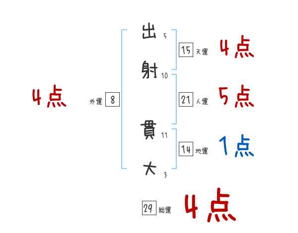 出射貫大さんの画数の鑑定結果