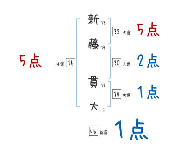 新藤貫大さんの画数の鑑定結果