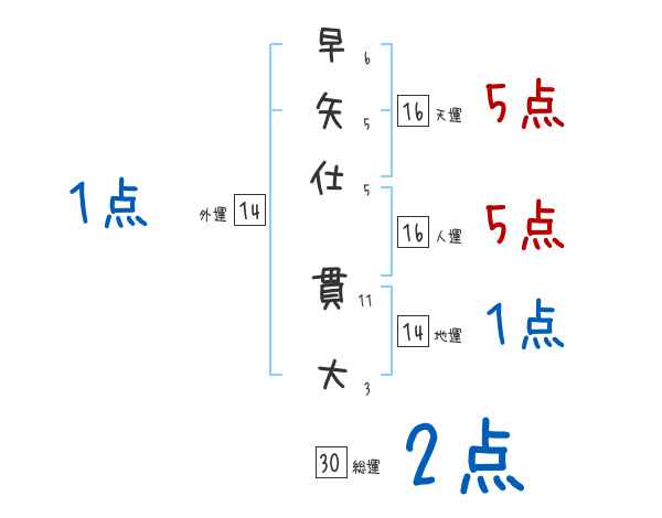 天運![]() | 早矢仕貫大さんの天運は16画の5つ星!人望が厚く大きく発展する。逆転成功が見える。 家系が持つ宿命的な運勢を表します。祖先から受け継いだ苗字ですので自分の力が及びません。家柄を象徴します。 |