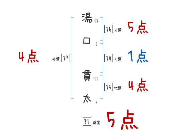 湯口貫太さんの画数の鑑定結果