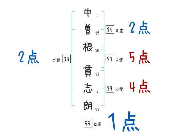 中曽根貫志朗さんの画数の鑑定結果