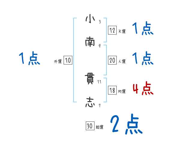 小南貫志さんの画数の鑑定結果