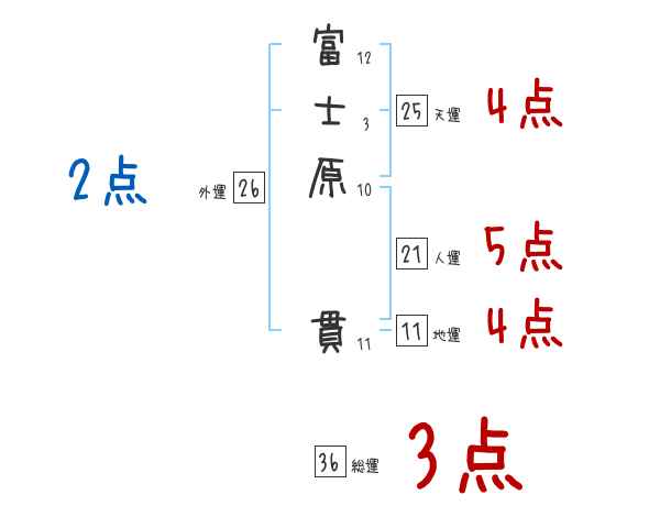 富士原貫さんの画数の鑑定結果