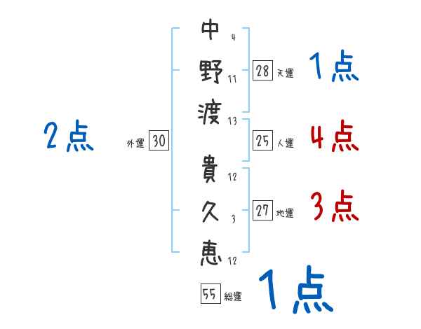 中野渡貴久恵さんの画数の鑑定結果