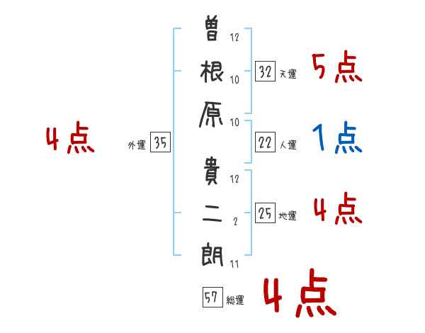 曽根原貴二朗さんの画数の鑑定結果
