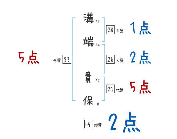 溝端貴保さんの画数の鑑定結果