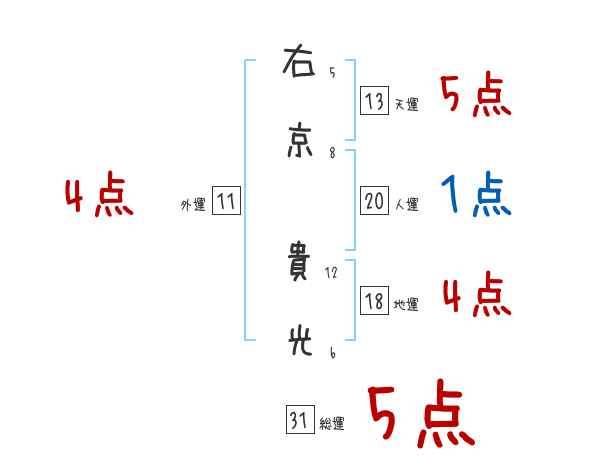 右京貴光さんの画数の鑑定結果