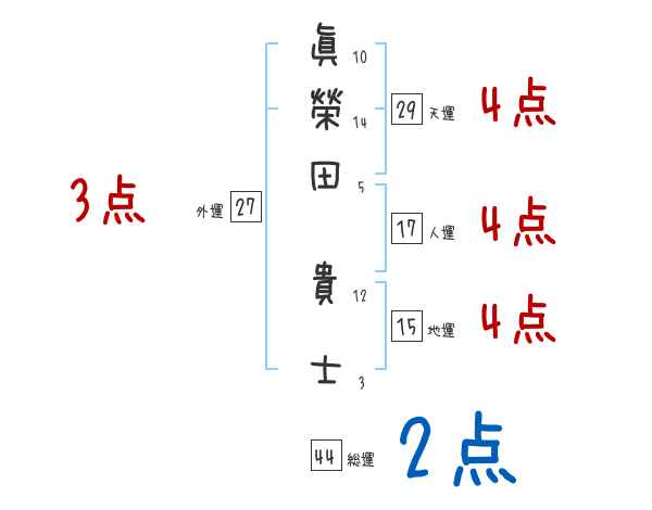 眞榮田貴士さんの画数の鑑定結果