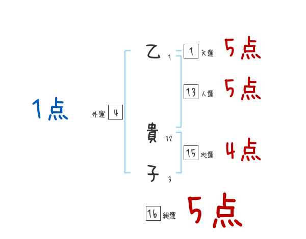 総運![]() | 乙貴子さんの総運は16画の5つ星!人望が厚く大きく発展する。逆転成功が見える。 あなたの人生を表す1番重要な運勢です。生涯を通じて影響する総合運となり、主に50歳以降の晩年期に影響を及ぼします。 |