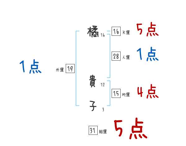 橘貴子さんの画数の鑑定結果