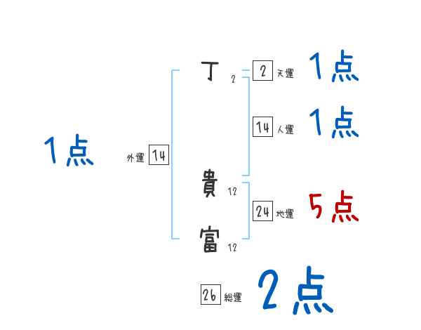 総運![]() | 丁貴富さんの総運は26画の2つ星!波瀾万丈かも。信頼できる人を大事にしましょう。 あなたの人生を表す1番重要な運勢です。生涯を通じて影響する総合運となり、主に50歳以降の晩年期に影響を及ぼします。 |