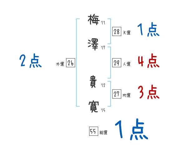 梅澤貴寛さんの画数の鑑定結果