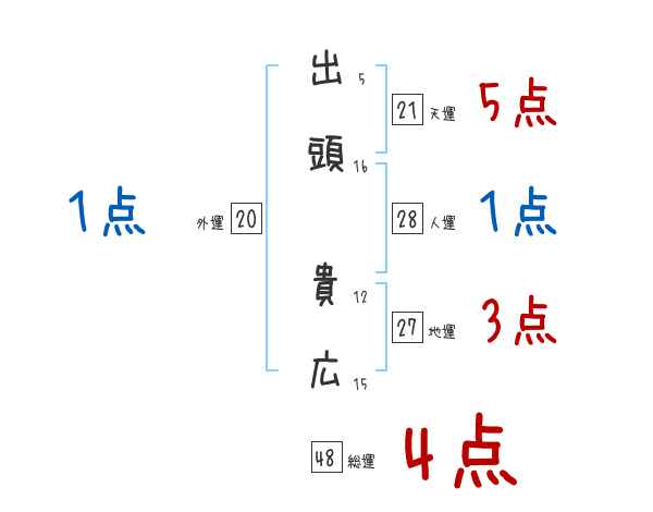 出頭貴広さんの画数の鑑定結果