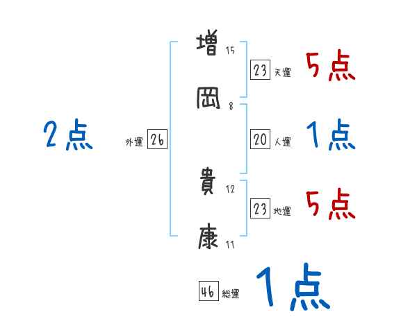 増岡貴康さんの画数の鑑定結果