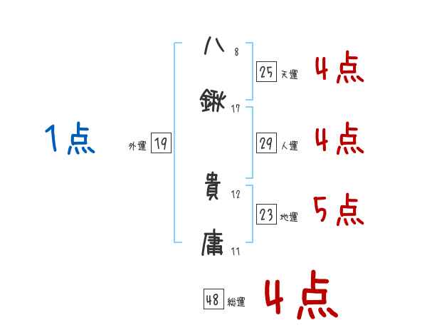 八鍬貴庸さんの画数の鑑定結果