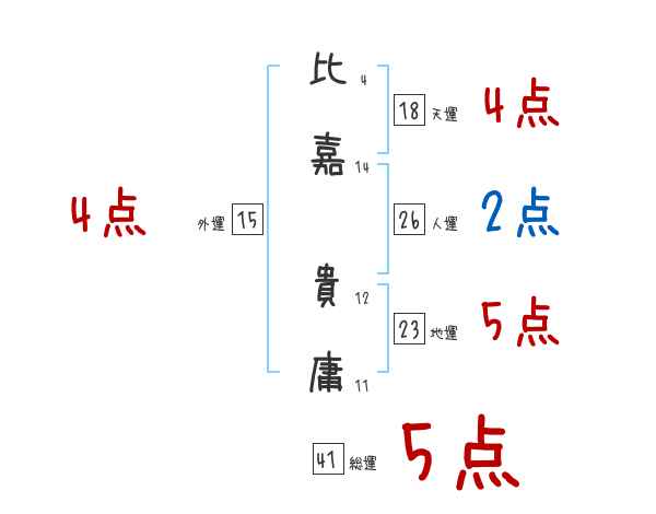 比嘉貴庸さんの画数の鑑定結果