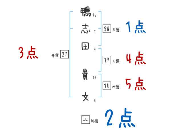 総運![]() | 鴨志田貴文さんの総運は44画の2つ星!誠実で慎重な性格。物事を考えすぎないように注意しましょう。 あなたの人生を表す1番重要な運勢です。生涯を通じて影響する総合運となり、主に50歳以降の晩年期に影響を及ぼします。 |