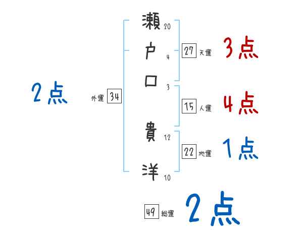 瀬戸口貴洋さんの画数の鑑定結果