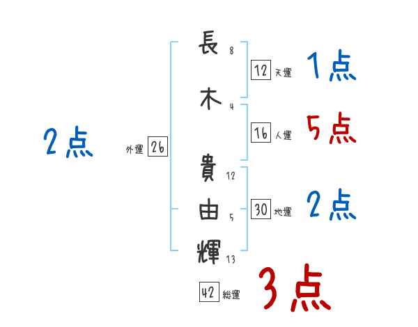 長木貴由輝さんの画数の鑑定結果