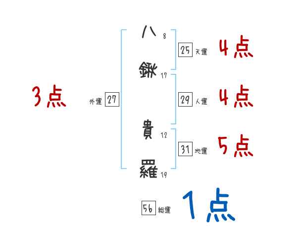 八鍬貴羅さんの画数の鑑定結果