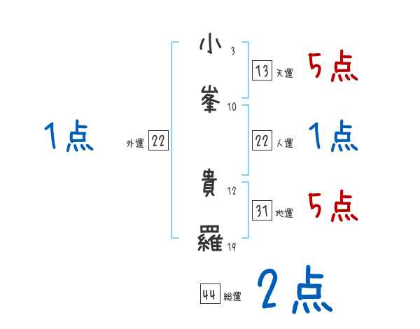 小峯貴羅さんの画数の鑑定結果