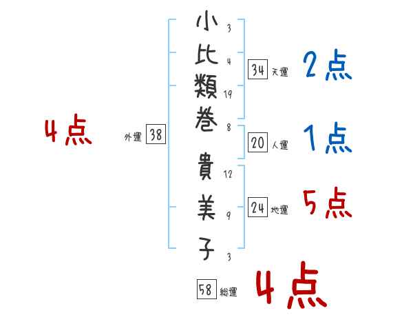 小比類巻貴美子さんの画数の鑑定結果