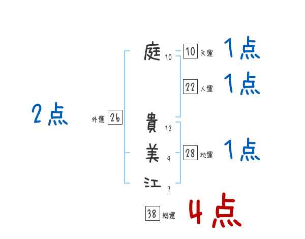 庭貴美江さんの画数の鑑定結果
