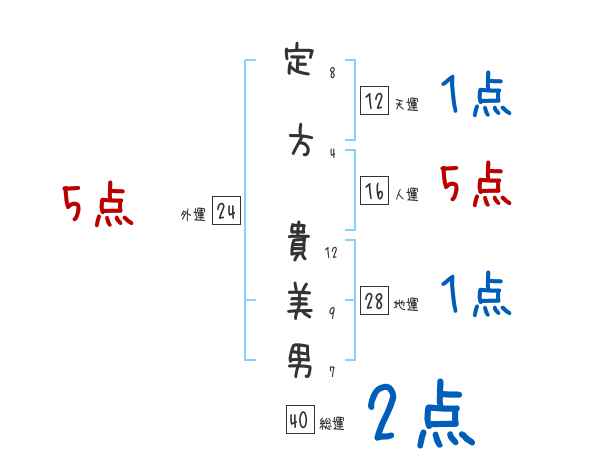 外運![]() | 定方貴美男さんの外運は24画の5つ星!家庭運が良く順調な人生。金運にも恵まれる。 生活面を象徴する運勢です。外部から受ける影響力を表し、結婚運、家庭運や職場、環境への順応性を表します。 |