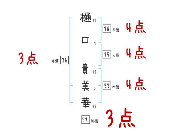 樋口貴美華さんの画数の鑑定結果