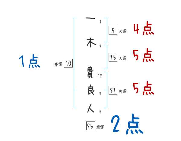 一木貴良人さんの画数の鑑定結果