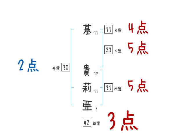 基貴莉亜さんの画数の鑑定結果