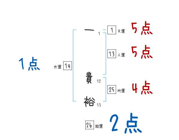一貴裕さんの画数の鑑定結果