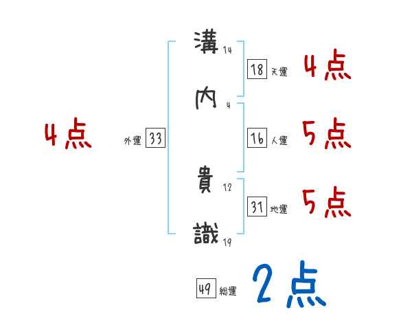 溝内貴識さんの画数の鑑定結果