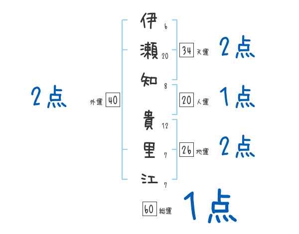 伊瀬知貴里江さんの画数の鑑定結果